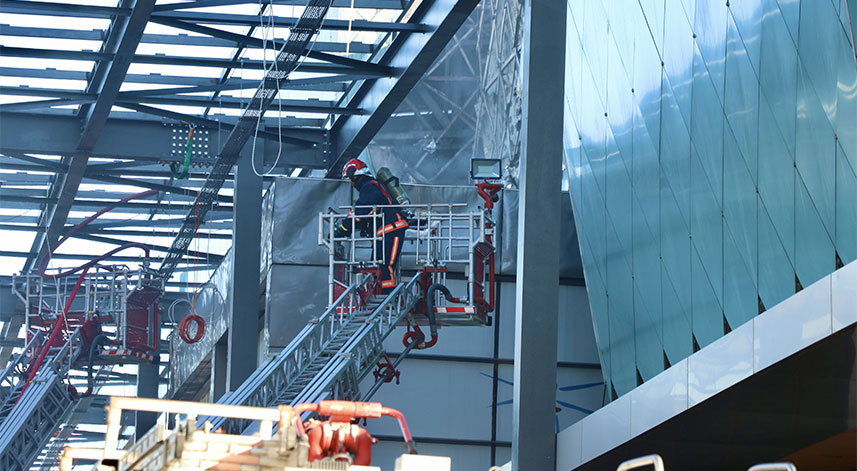 Ortahisar ilçesine bağlı Kalkınma Mahallesi'nde ek bina çalışmalarının da devam ettiği alışveriş merkezinin dış cephesinde yangın çıktı.