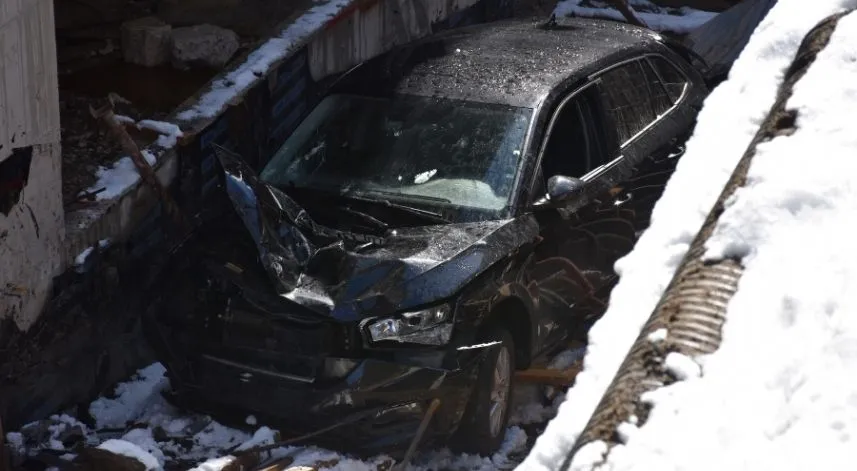 Ortahisar ilçesine bağlı Beşirli Mahallesi'nde N.Ş.A. idaresindeki otomobil, kar nedeniyle kayganlaşan yolda direksiyon hakimiyetini kaybederek inşaat halindeki binanın temeline düştü.
