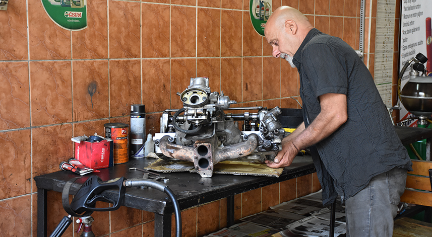 Trabzon'un Ortahisar ilçesinde oto tamircisi 57 yaşındaki Aydın Peker, mesleğe başladığı günden beri tek markanın araçlarını tamir ediyor.