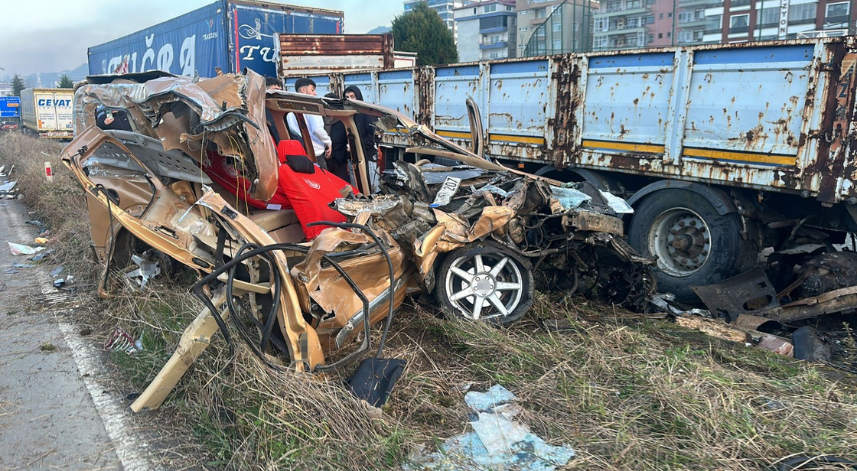 Karadeniz Sahil Yolu'nda seyir halinde ilerleyen Tekin Balsüzen idaresindeki araç, sürücüsünün direksiyon hakimiyetini kaybetmesiyle yol kenarında park halinde bekleyen tıra çarptı.