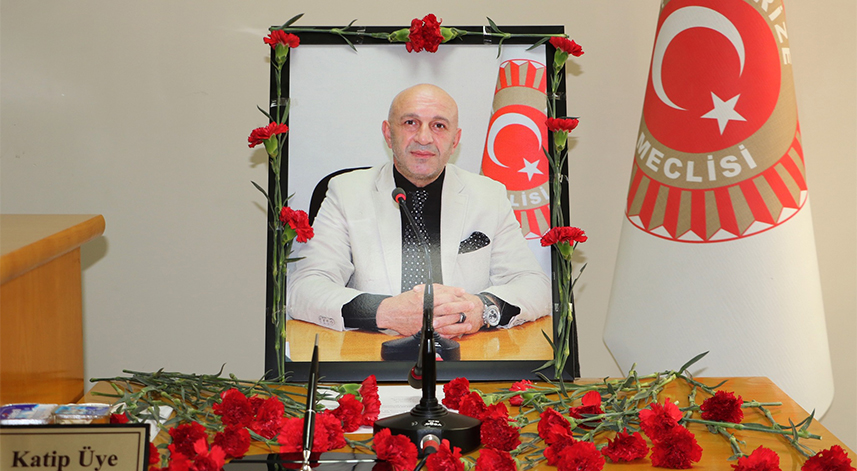 Görev aldığı divan kurulundaki makamına fotoğrafı asılırken masası karanfillerle donatıldı.