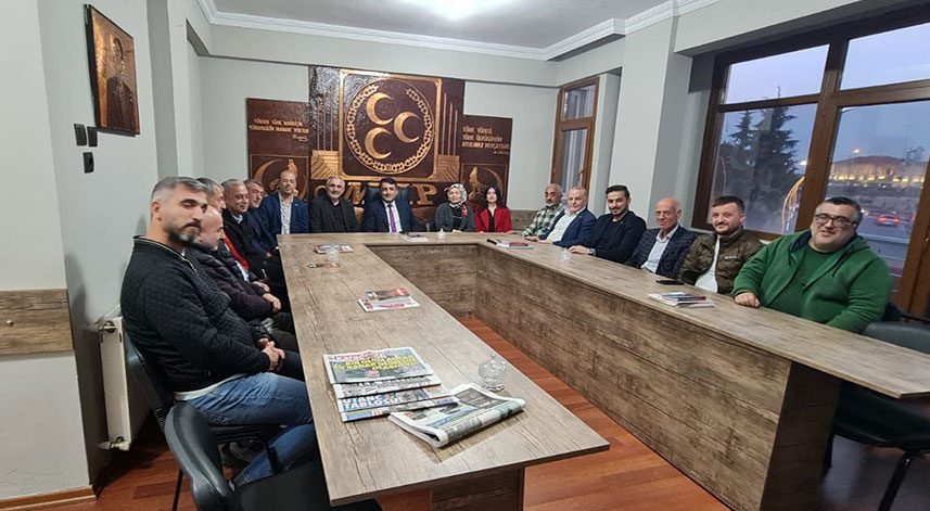Tüm Çay İş Sendikası Genel Başkanı Hasan Fehmi Bursalı, sendika yönetim kurulu üyeleri ile Kadın Komite ve Gençlik Komite yöneticileri; Milliyetçi Hareket Partisi Rize il Başkanı İhsan Alkan'ı ziyaret etti.