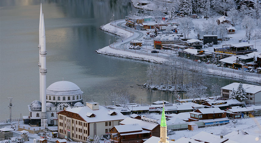 Çaykara ilçesindeki ünlü turizm merkezi Uzungöl'de de akşam başlayan kar yağışı sabaha kadar devam etti. Hava sıcaklığının sıfırın altında 3 dereceye kadar düştüğü Uzungöl'de, kar kalınlığı 5 ila 10 santimetre arasında değişiyor.