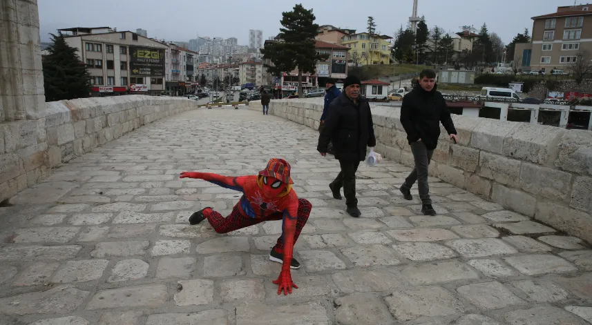 İzmir'de mankenlik ve oyunculuk yapan 25 yaşındaki Koç, "Türkiye'yi gezen İzmirli fenomen Türk örümcek adam" olarak Tokat'a geldi.