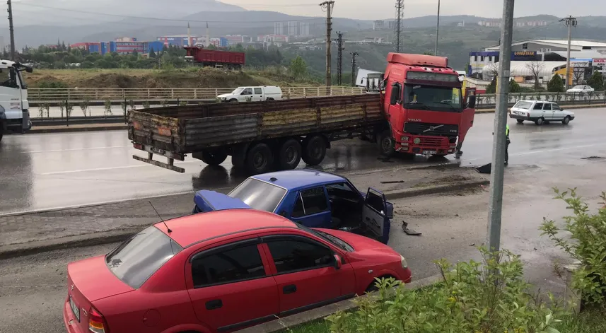 Şehit Ateşe Reşat Bulvarı'nda makaslayan M.E. idaresindeki 78 BM 623 plakalı tır, önünde seyreden N.Ç. yönetimindeki 78 ABT 223 plakalı otomobile çarptı.