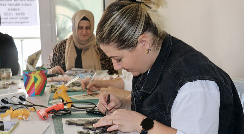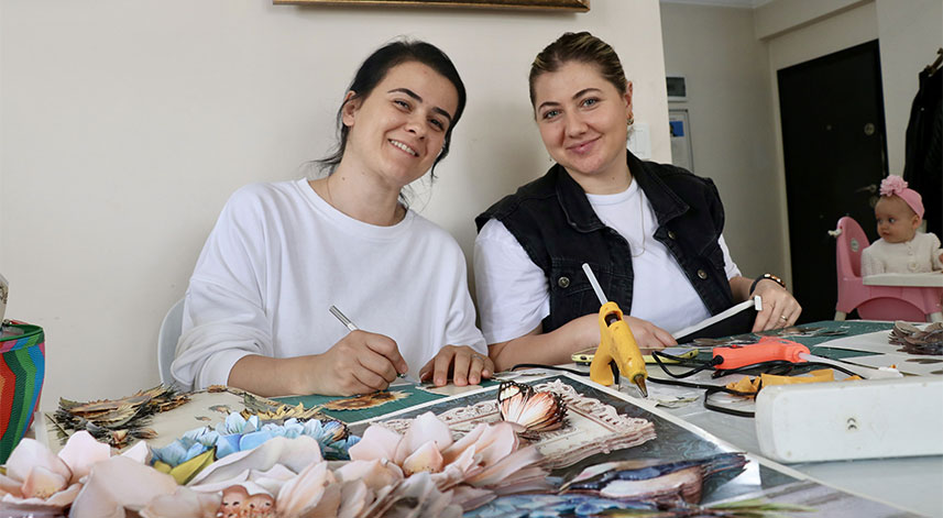 Trabzon'da bir grup kadın, el sanatları kursunda öğrendikleri teknikle hazırladıkları üç boyutlu kağıt rölyef tabloları satarak aile ekonomilerine katkı sağlıyor.