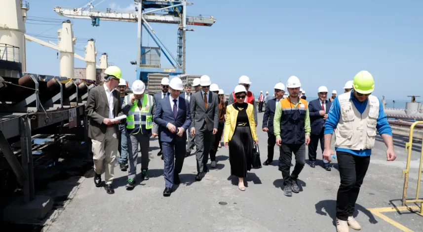 Sevkiyat programında katılımcılar gemiye çıkarak buğdayın gemiden tırlara yüklenmesini izledi ve katılımcı ülke temsilcileriyle hatıra fotoğrafı çektirildi.