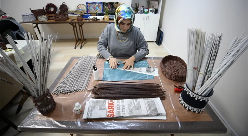 Mimari dekoratif el sanatları öğreticisi Hilal Ümit ise çöpe atılacak gazete sayfalarını değerlendirdiklerini ifade etti.