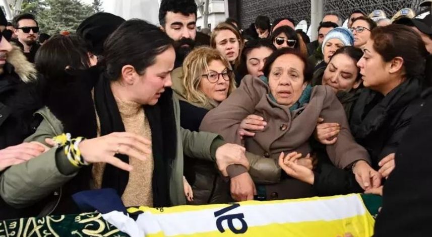 Burcu Altın Deprem, eşinin Fenerbahçe formasını tabutun üzerine koyarken anne Seval Deprem baygınlık geçirdi.