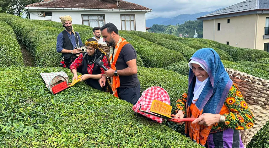 Haremtepe Köyü'ndeki Çeçeva çaylıkta gerçekleşen çekimlere, Çayeli Kültür Sokağı ekibi ve yöresel sanatçılar da katıldı.