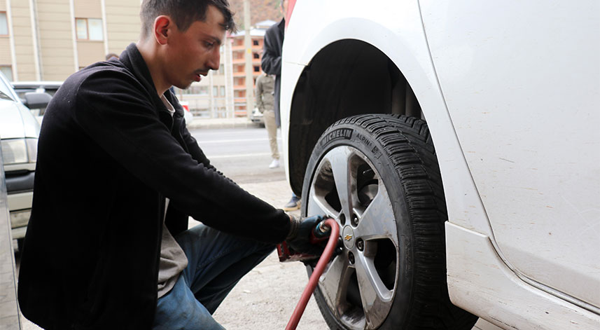 Oto lastikçi Serdar Çoban ise 1 Aralık’ta başlayan zorunlu kış lastiği uygulamasının meteorolojinin uyarısının ardından biraz öne aldıklarını belirterek, “Bugün gece yarısına kadar mesai yapıp vatandaşlarımızı mağdur etmemek istiyoruz. Güvenli seyahat için herkes kış lastiğini taktırmalı. Dünle bugün arasında kar yağışı beklentisi ve meteorolojinin uyarıları nedeniyle işlerimizde yüzde 100 artış oldu. Yoğun bir şekilde çalışıp kimseyi mağdur etmeyeceğiz” diye konuştu.