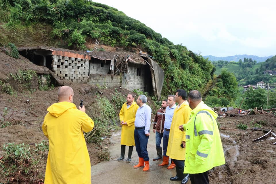 Vali Baydaş, gece geç saatte başlayan yoğun yağış sonrası heyelanların meydana geldiği Çayeli ve Güneysu ilçelerinde incelemelerde bulunarak, yetkililerden bilgi aldı.