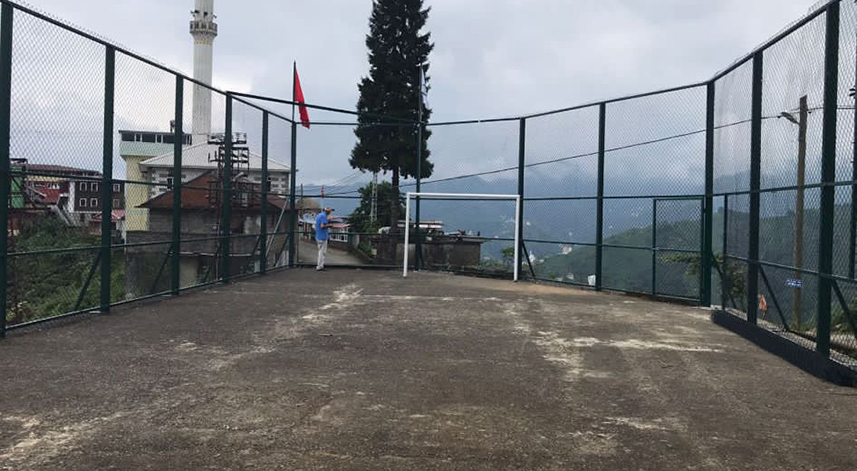 Rize'de yaş çay alım yerinin üzerine gençler için futbol sahası inşa ediliyor.