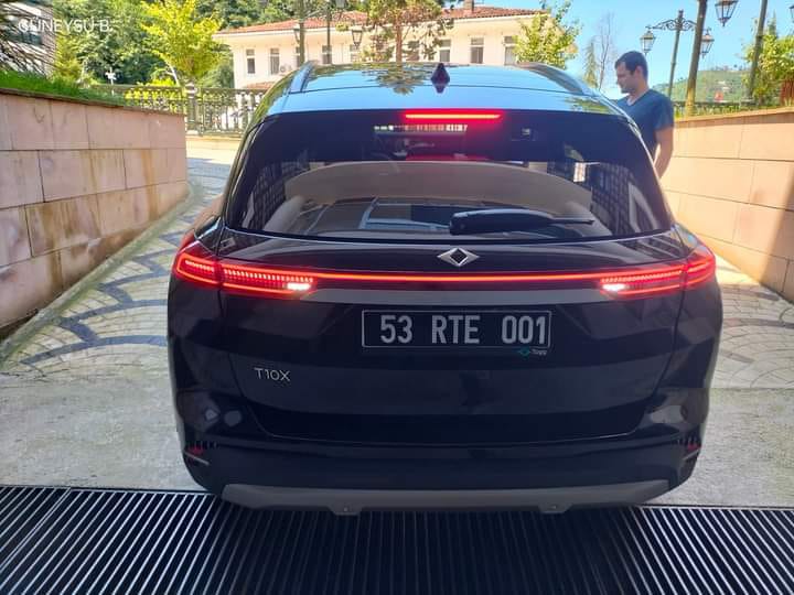 Türkiye'nin yerli otomobili Togg, Güneysu Belediyesi’nin makam aracı oldu. Plakası Rize’nin plakası 53 harfleri Cumhurbaşkanı Recep Tayyip Erdoğan’ın baş harfleri RTE ve son üç rakamı ise 001’den oluştu.