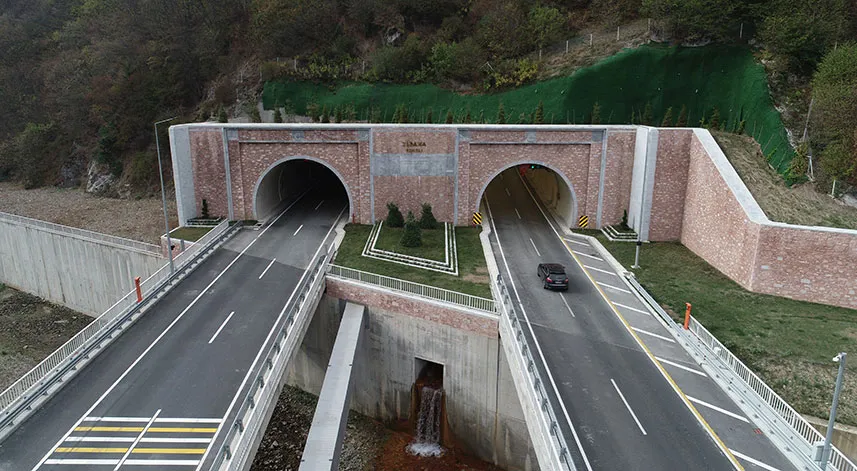 "Proje, Türk mühendisleri ve işçileri tarafından inşa edildi. Zigana Tüneli, ülkemizin ve Avrupa'nın en uzun çift tüplü kara yolu tüneli. Zigana Tüneli'nden hizmete sunulduğu 3 Mayıs 2023'ten bugüne kadar 1 milyon 986 araç geçiş yaptı."