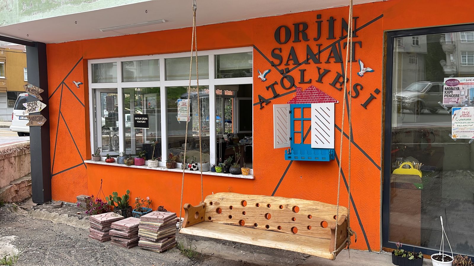 Müftü Mahallesinde bulunan bir sanat atölyesinin sahibi olan Şaduman Öz, iş yerini süsleyen çiçeklere gözü gibi bakıyor. Öz, çiçeklerini atölyesinin dışında ve perceresinin önünde sergilerken, yoldan geçenler de sürekli kendisinden çiçeklerden istemesi nedeniyle bunalınca ilginç bir çözüm buldu.