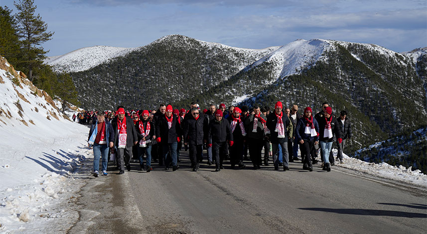 Gümüşhane’de Sarıkamış Harekâtı’nın 109. yıl dönümünde yüzlerce kişi şehitleri anmak için 100 metre uzunluğundaki Türk bayrağıyla eski Zigana Tüneli’nden başlayarak Zigana Kayak Tesisleri’ne kadar yürüdü.