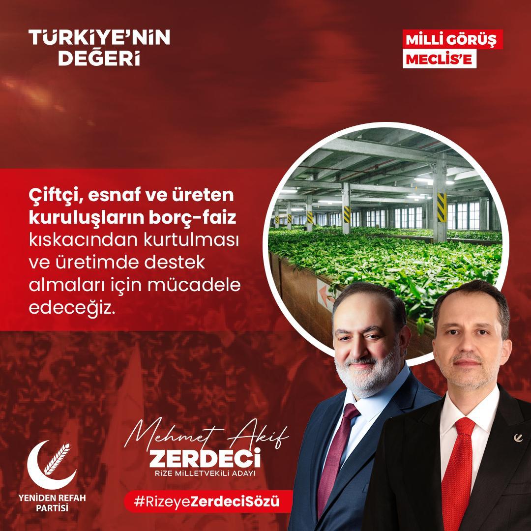 Milletvekili adaylarından Mehmet Akif Zerdeci, ''Dr. Fatih Erbakan Liderliğindeki Yeniden Refah Partisi’nin kurulduğu günden beri Rize'de halkın çok büyük bir teveccühünü kazandığını belirterek, ''Rizeli vatandaşlarımızın partimize çok büyük bir rağbeti var. Biz esnaflarımızı, hemşehrilerimizi tek tek dolaşıyoruz. İnşallah milli görüşü 14 Mayıs'ta yapılacak olan seçimlerde Rize'den milletvekili olarak meclise gittiğimiz zaman , 54’ncü Erbakan hükümetindeki gibi yeniden bolluk ve bereket getireceğiz.'' dedi